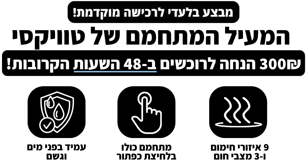 לאחר מחקרים ושינויים רבים באיכות המוצר הגענו למתכון המושלם שיהפוך את החורף שלכם לחוויה יוצאת דופן. טוויקסי - שולטים במזג האוויר בישראל.