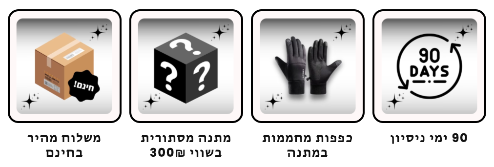 לא אהבת את המוצר? פנה אלינו ב30 ימים הראשונים וקבל החזר כספי מלא!
